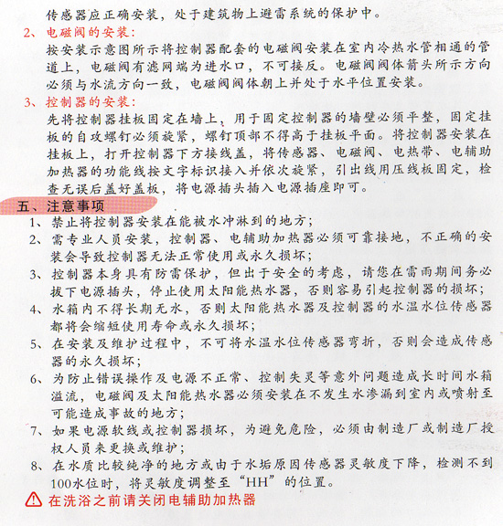 太阳能热水器单机控制仪电磁阀和控制器的安装, 和注意事项